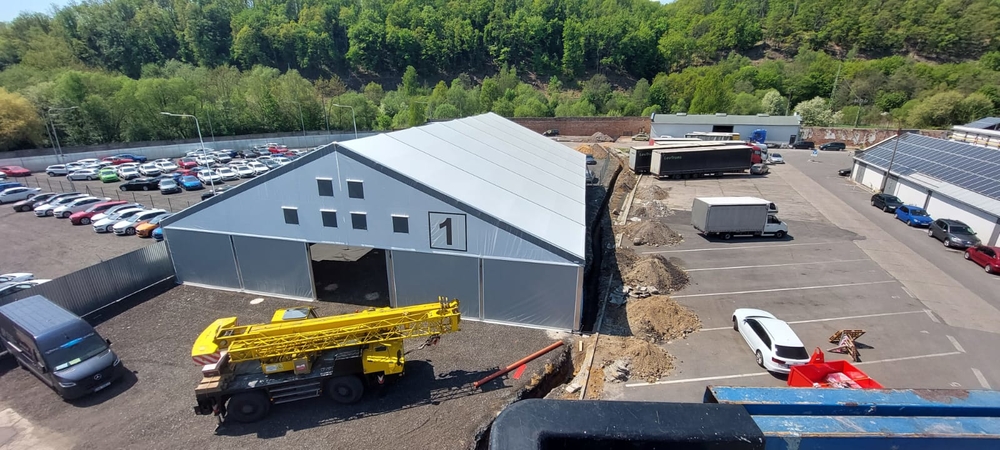 2x Zelthalle 25x35m, in 14 Tagen aufgebaut!
