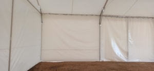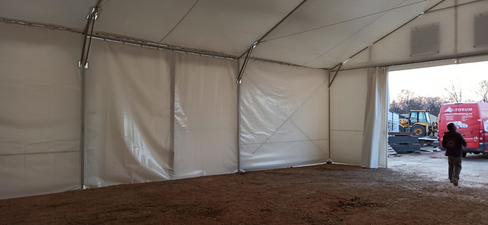 Mit ihren kleineren Abmessungen von 10 x 15 m und einer Seitenwandhöhe von 4 m wird diese Zelt Halle in ihrer Standardausführung als Lackierwerkstatt genutzt und ist ganzjährig in Betrieb. Zu diesem Zweck wurde die Zelt Halle mit einer zusätzlichen Innenverkleidung ausgestattet, die den Innenraum von der Außenumgebung isoliert. Auf diese Weise ist ein reibungsloser Winterbetrieb mit optimalen Temperatur- und Wirtschaftlichkeitsbedingungen gewährleistet.