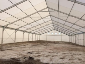 Ende Januar 2017 haben wir einen unserer größten Vermietungsaufträge realisiert. Die mobile Lagerhalle Forum ALFA 20 x 50 m, Traufhöhe 4 m, wird zur Lagerung von Material dienen.