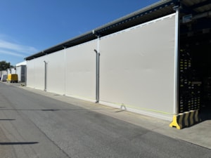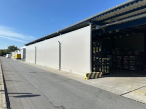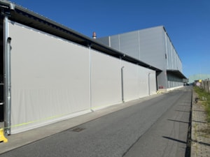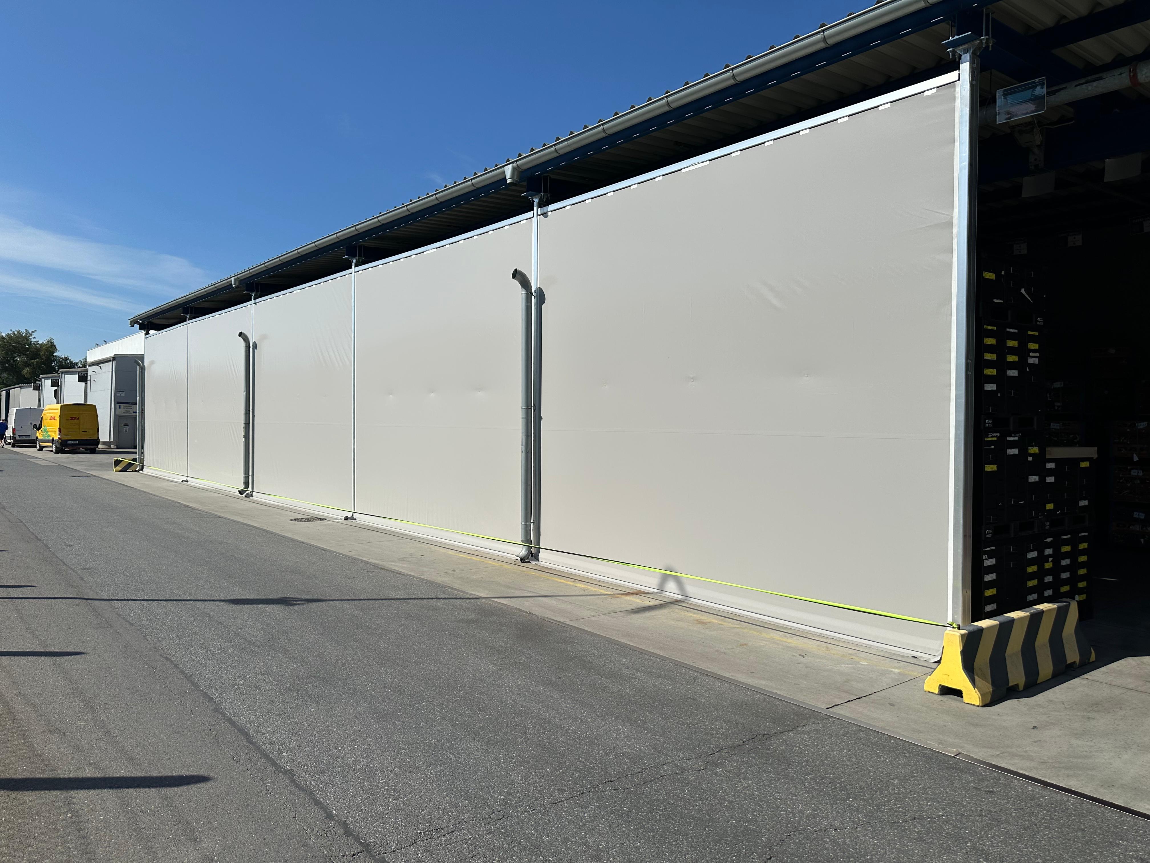 Ein weiteres Beispiel für eine funktionelle Außenwand für den industriellen Bereich. Eine schnell, einfach und kostengünstig zu errichtende Abdeckwand für einen Unterstand.