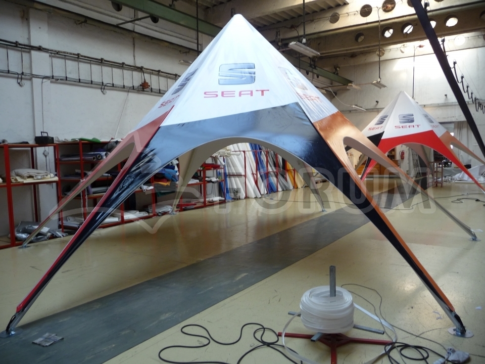 Wir haben einen neuen Typ des Pyramidenzeltes Delta entwickelt, das über eine eigene Konstruktion verfügt, die Teil der Zeltplane ist.