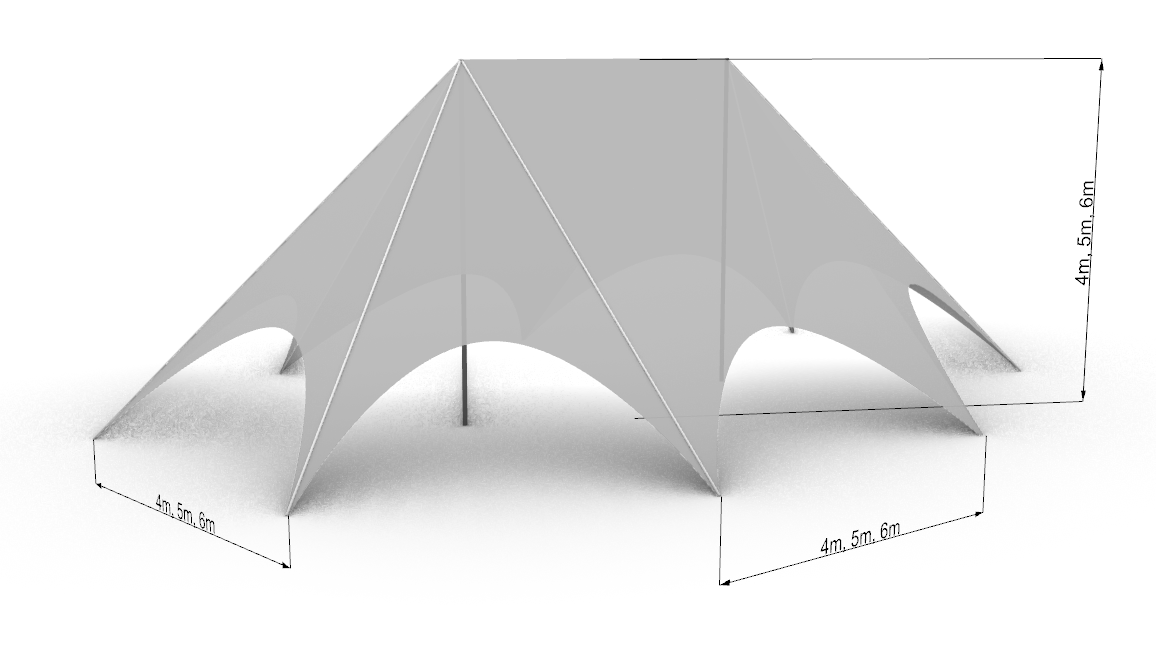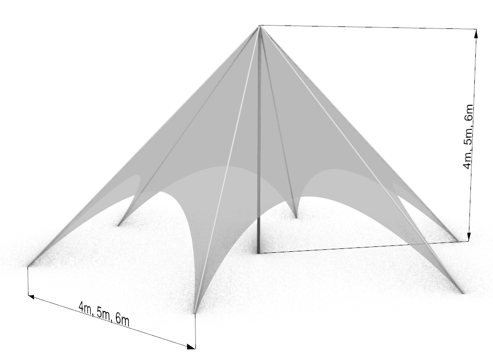 | Spannweite der Seiten des Sechsecks: | 4 m | 5 m | 6 m |