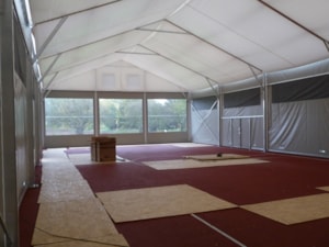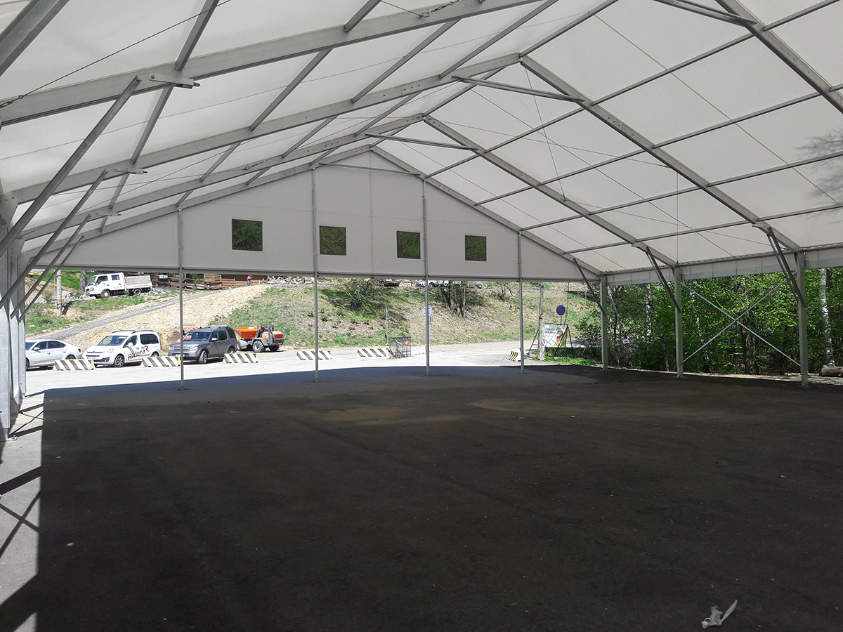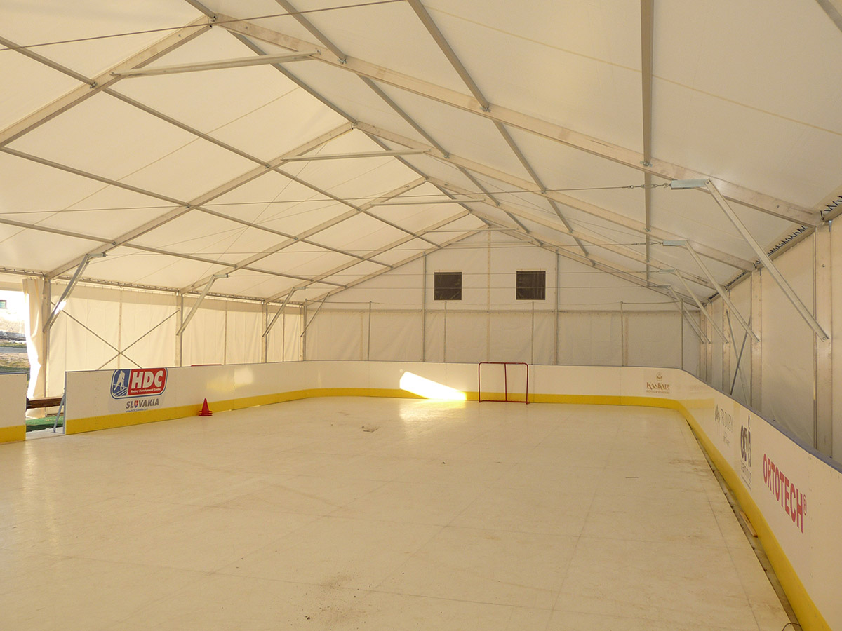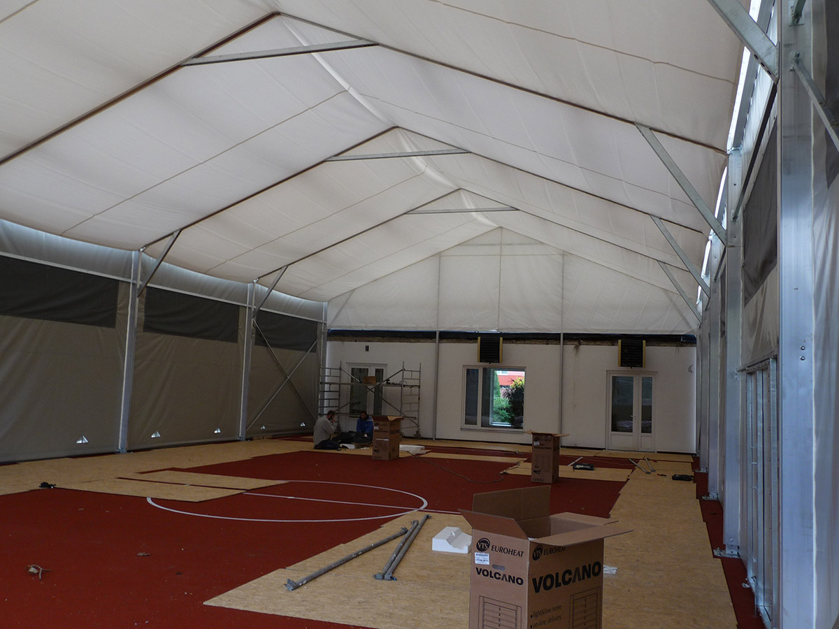 Wenn ein Investor keine großen Investitionen für die Überdachung von temporären und permanenten Sportanlagen tätigen kann, bietet die Zelt- und Hallenkonstruktion Forum eine interessante Lösung. Je nach der gewünschten Sportart kann die Halle innen entsprechend ausgestattet werden und erfüllt dann die Funktion einer festen Spezialkonstruktion zu sehr günstigen Investitionskosten.