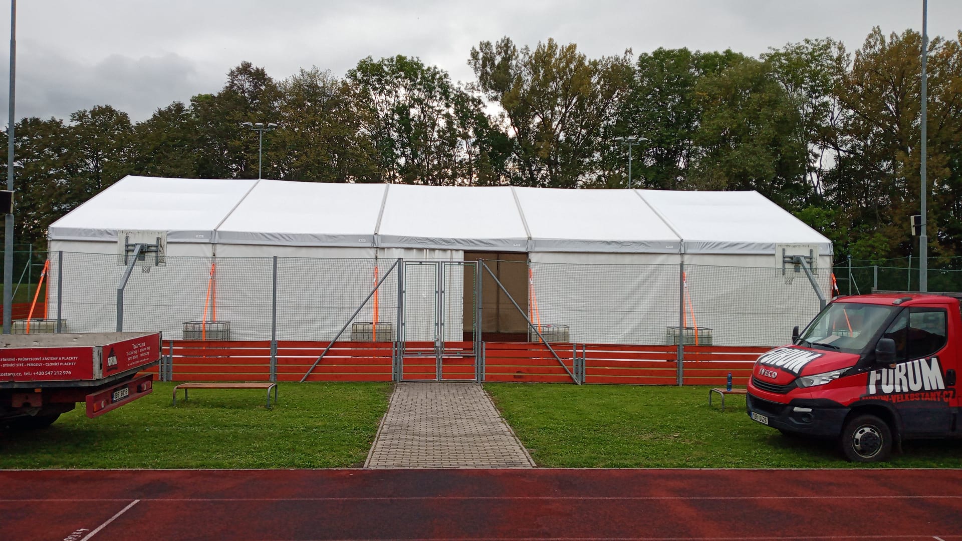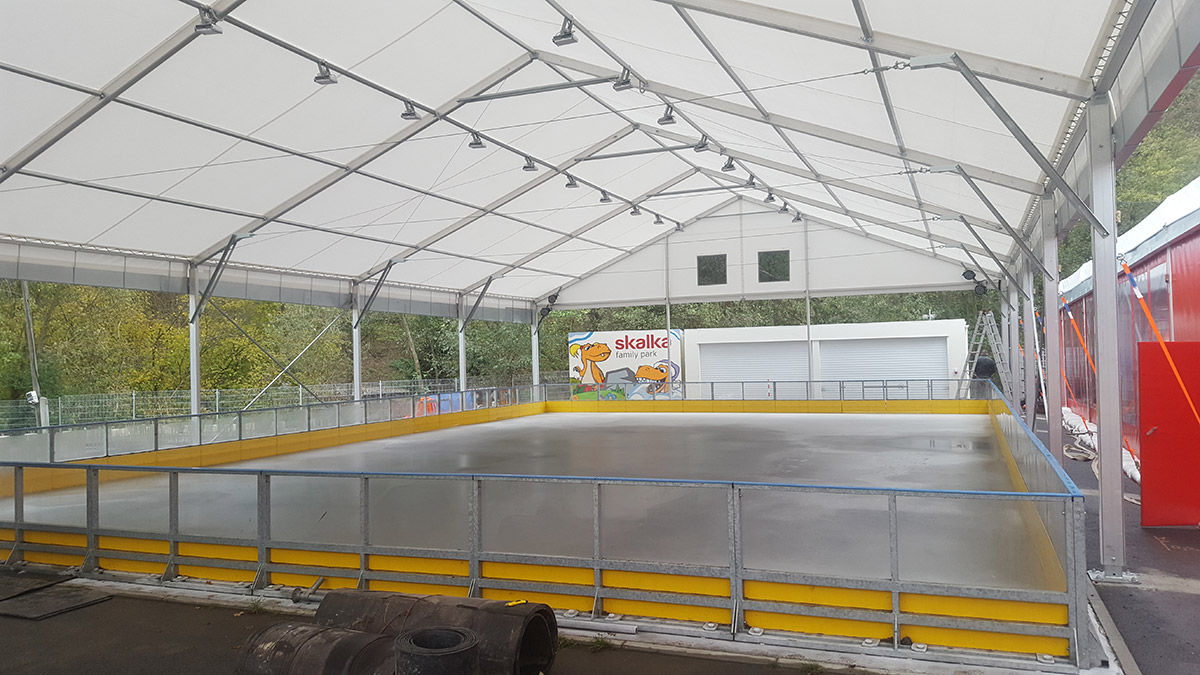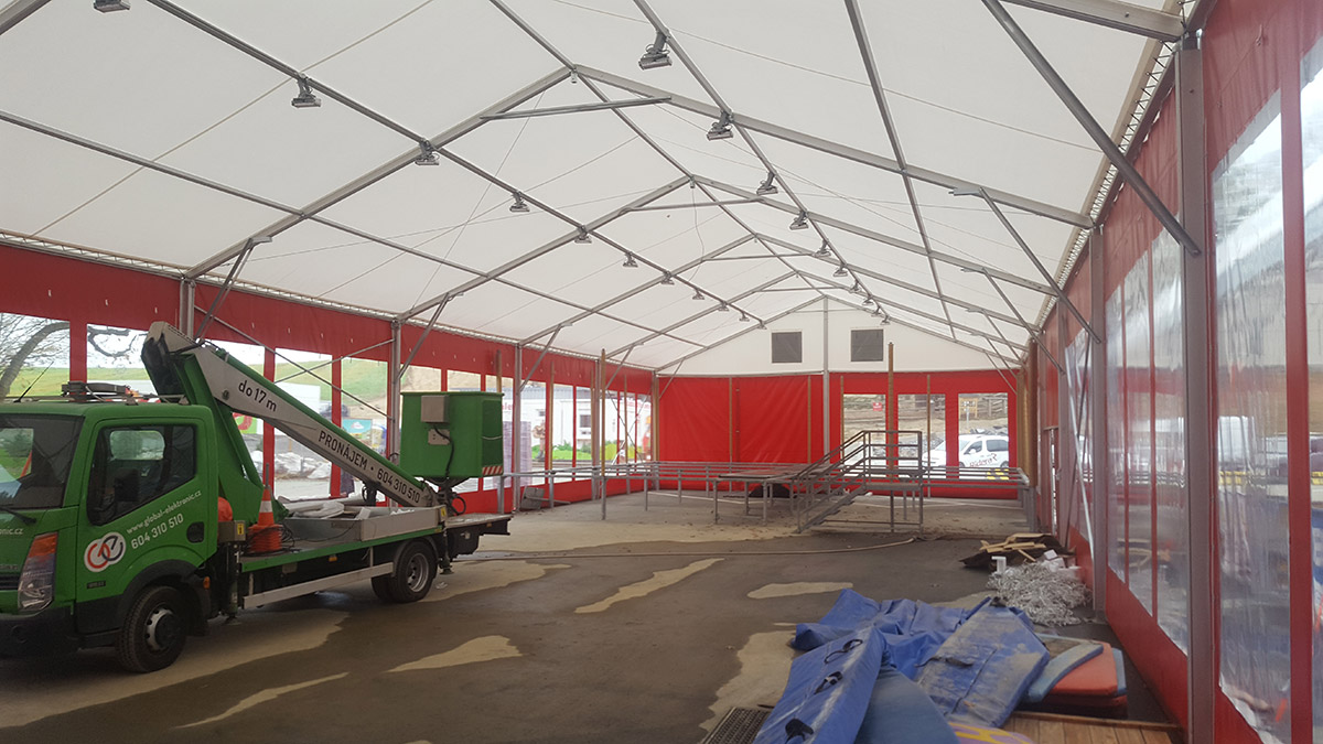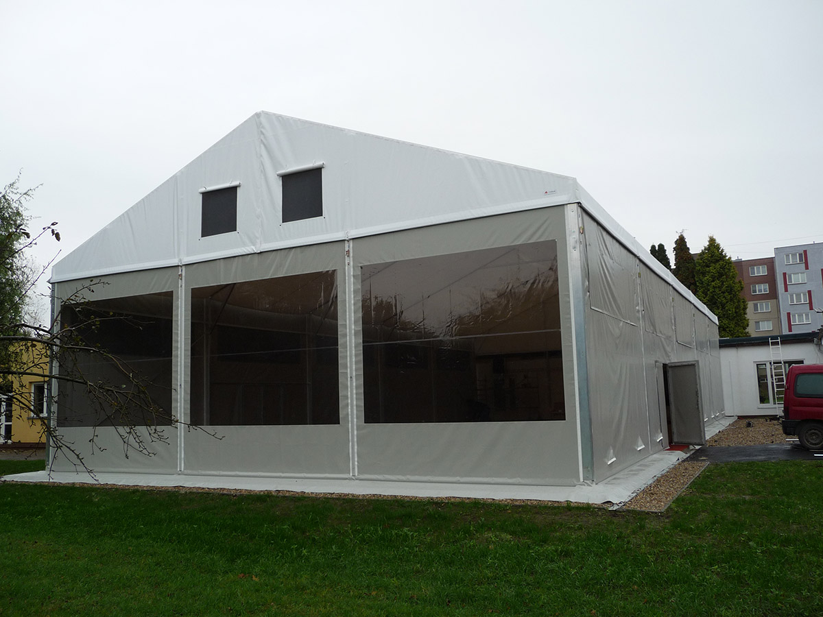 Wenn ein Investor keine großen Investitionen für die Überdachung von temporären und permanenten Sportanlagen tätigen kann, bietet die Zelt- und Hallenkonstruktion Forum eine interessante Lösung. Je nach der gewünschten Sportart kann die Halle innen entsprechend ausgestattet werden und erfüllt dann die Funktion einer festen Spezialkonstruktion zu sehr günstigen Investitionskosten.