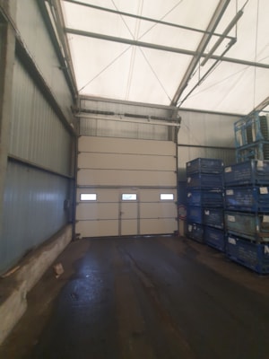4x Rolltore 4,5 x 4,5m, Leuchtstoffröhrenbeleuchtung, Gebläse zum Aufblasen der Dachplane