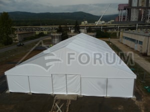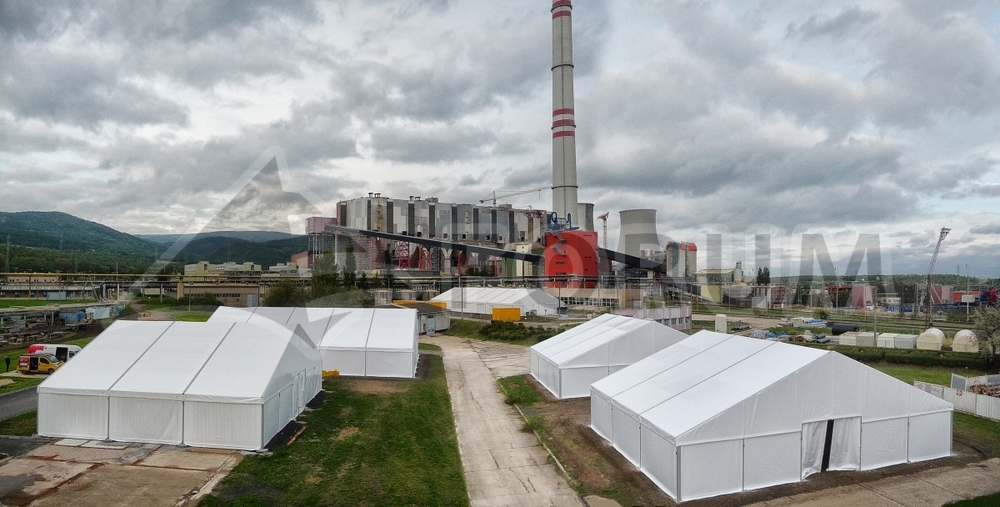 Unsere Textilhallen dienen während der Generalsanierung des Kraftwerks Průnéřov als temporäre überdachte Arbeitsplätze für Bauunternehmer. Hallen mit einer Spannweite von 18 m in verschiedenen Längenvarianten. Die einzelnen Bauteile können so bequem direkt auf der Baustelle hergestellt werden.