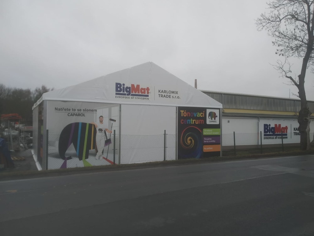 Möchten Sie die Zelthalle zusätzlich als Werbefläche nutzen? Bei uns ist das kein Problem. Mit einem vollflächigen Druck können wir Ihre Halle in eine Werbetafel verwandeln :).