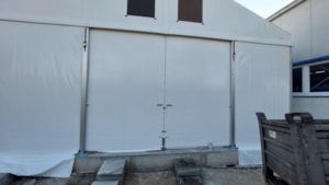 Beispiele für einige der zahlreichen Zubehörteile, die standardmäßig mit unseren Zelthallen geliefert werden. Tore, Türen, Innenverkleidung, Isolierrand, Verbindungstunnel... alles in einer Bestellung :).